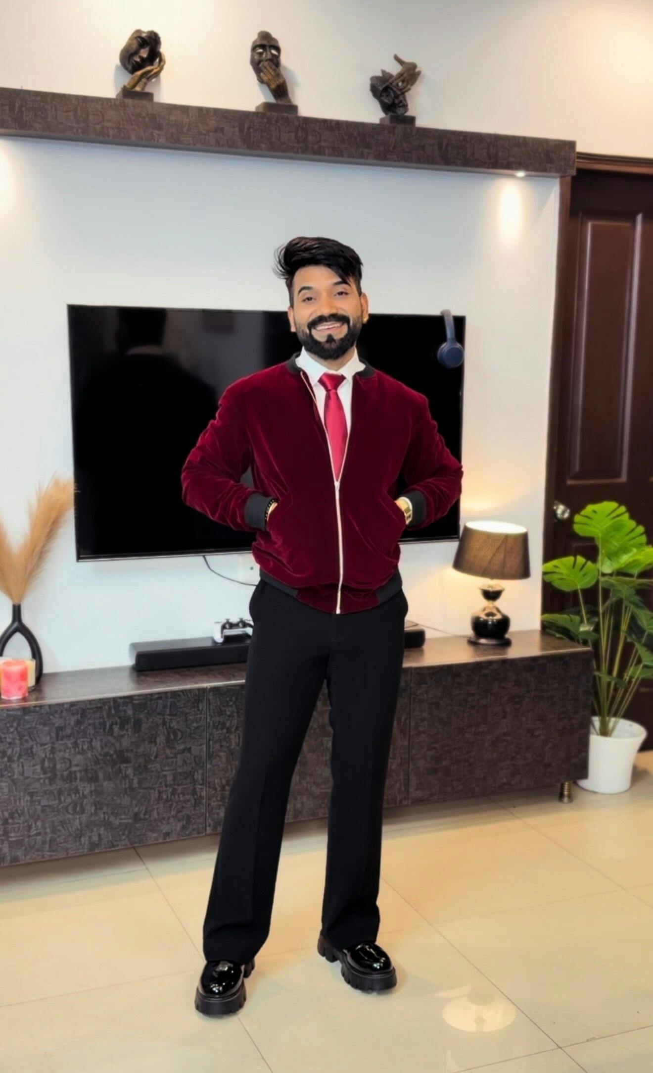 This velvet bomber jacket is your go-to piece for turning heads at parties, nightclubs, and special events. Make a statement - own the night. Go Monochrome: Pair the velvet jacket with all-black or all-white for a sleek, standout look. Minimal Accessories: Let the jacket’s premium design take center stage. Confident Posture: The luxurious velvet and premium zipper demand attention—carry yourself with pride.